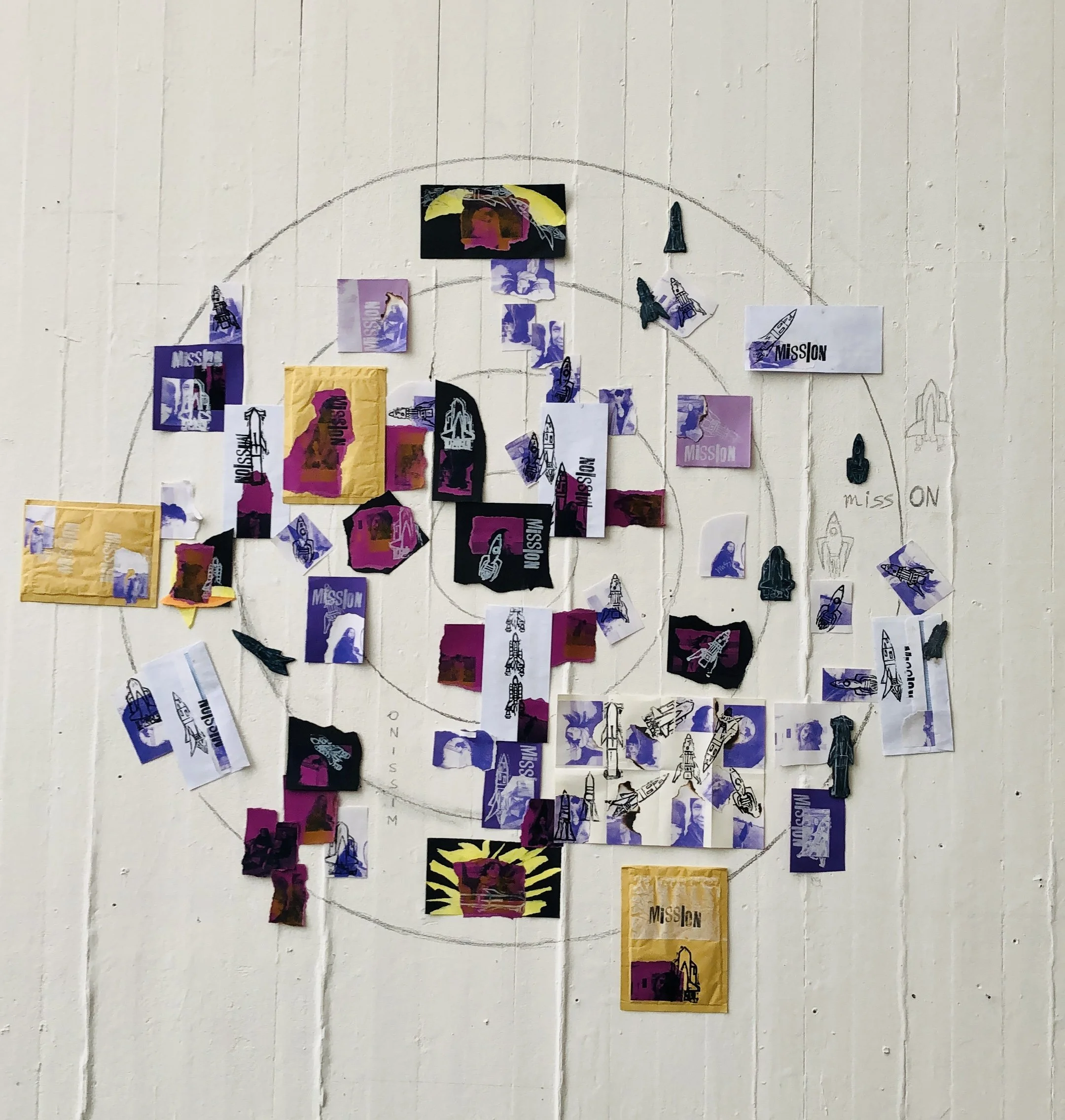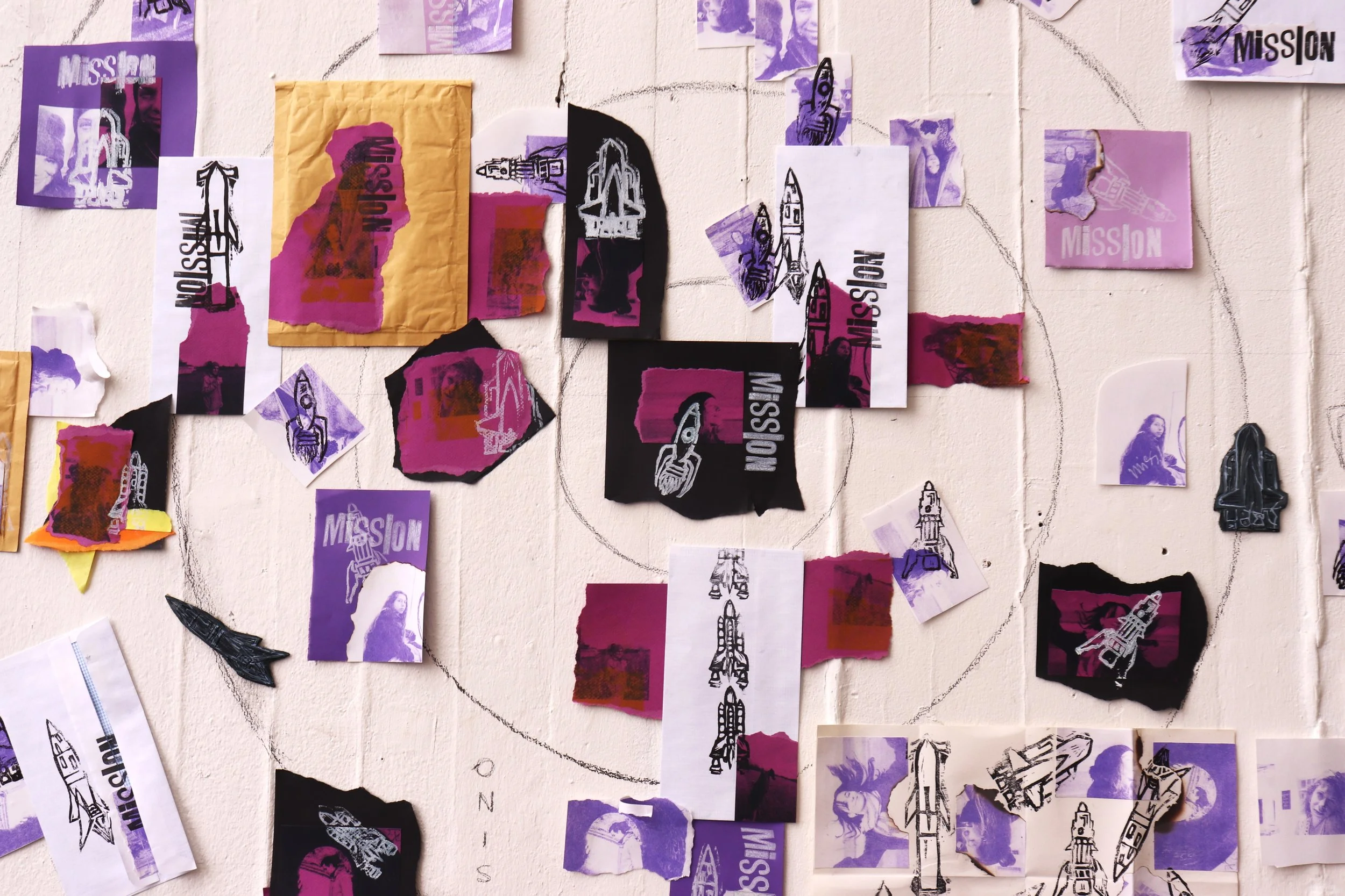 reimagines everyday items as emblems of space travel, with pencil-drawn orbits, paper rockets, and astronauts sourced from familiar photographs all dispatched into space through mail envelopes. This collection of prints embodies the spirit of human connection and exploration, reflecting personal voyages within a web of interconnected communities. Each piece merges the ordinary with the cosmic, highlighting our collective curiosity and the infinite potential of merging the familiar with the extraordinary.
